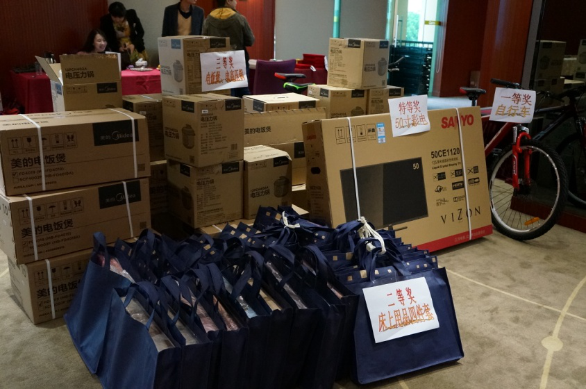 伴随着热情欢快的《西班牙斗牛舞》的响起,令人振奋的抽奖环节到来了,每个人都打起十二分的精神,紧紧地盯着抽奖箱,在全场所有人员的阵阵掌声中,大发(中国)的工作人员摇动抽奖箱,现场一片欢声笑语,由公司董事会领导为大发(中国)抽出了特等奖、一等奖、二等奖、三等奖并为获得者颁发奖品,其中更有董事会领导现场派发约6万元现金奖,把年会气氛渐渐推向高潮,每位员工的脸上都是红光满面,人人得奖,部分人员出现二次中奖,本次年会员工获奖率达到了160%。